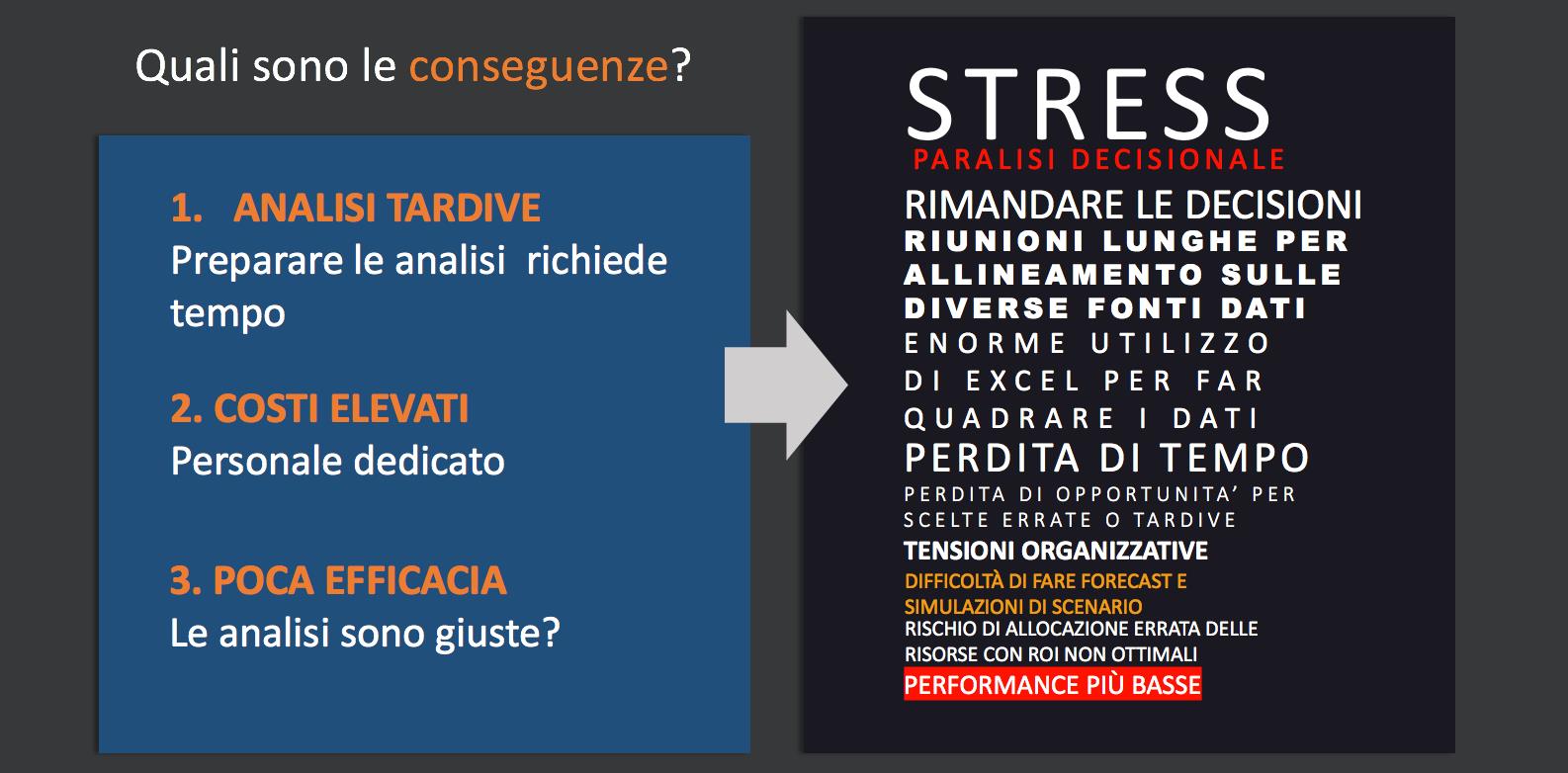 Oggi è possibile soddisfare queste esigenze, definendo il modello di business dell’azienda partendo dai processi, quadrando e validando i dati con la contabilità, ai fini di ottenere un sistema evoluto che permetta di valutare gli andamenti in tempo reale e fare delle simulazioni predittive che permettano di avere una visione futura di medio e lungo periodo.